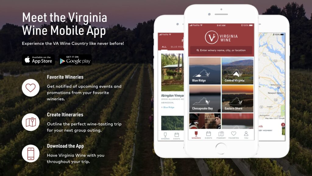 Now that you’ve set up your account on virginiawine.org, you can create itineraries including all your favorite Virginia Wine stops. Start favoriting your go-to wineries or wineries that catch your eye, then add them to your personalized trip. Later, optimize your route and access driving directions via your mobile device using the Virginia Wine app.